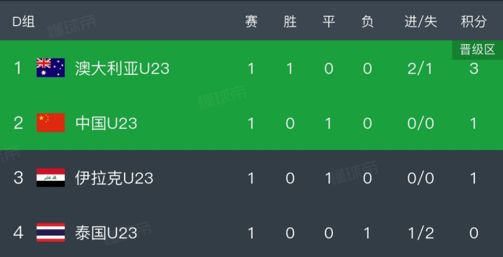 跟着国足0-0伊拉克,U23亚洲杯积分榜出炉,澳大利亚暂列头名。