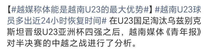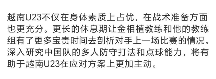 值得一提的是,靠近屡创佳绩的国足,越南媒体并不放在眼里,相背,他们的媒体撰文分析,合计越南队还是手捏两大上风:领先是他们在多歇一天的情况下领有很好的体能储备,且即便拖入点球大战,他们也能很好靠近,在国足还是明牌打防护反击的情况下,越南队不详进行有针对性的移交。