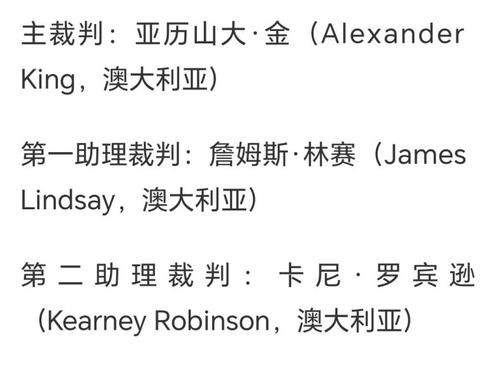 与此同期,国足在半决赛时杨皓宇将累计黄牌停赛,不仅如斯,国足还收到了最坏的1个音问,那即是吹判半决赛的裁判组主要为澳大利亚籍。