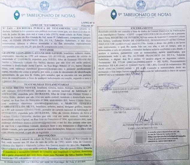 据报谈,该遗嘱已于6月12日在巴西阿雷格里港的一家公证处负责签订,并有两名见证东谈主在场。目下,该遗嘱仍需取得巴西式院的批准,内马尔才气被负责证实为接受东谈主。