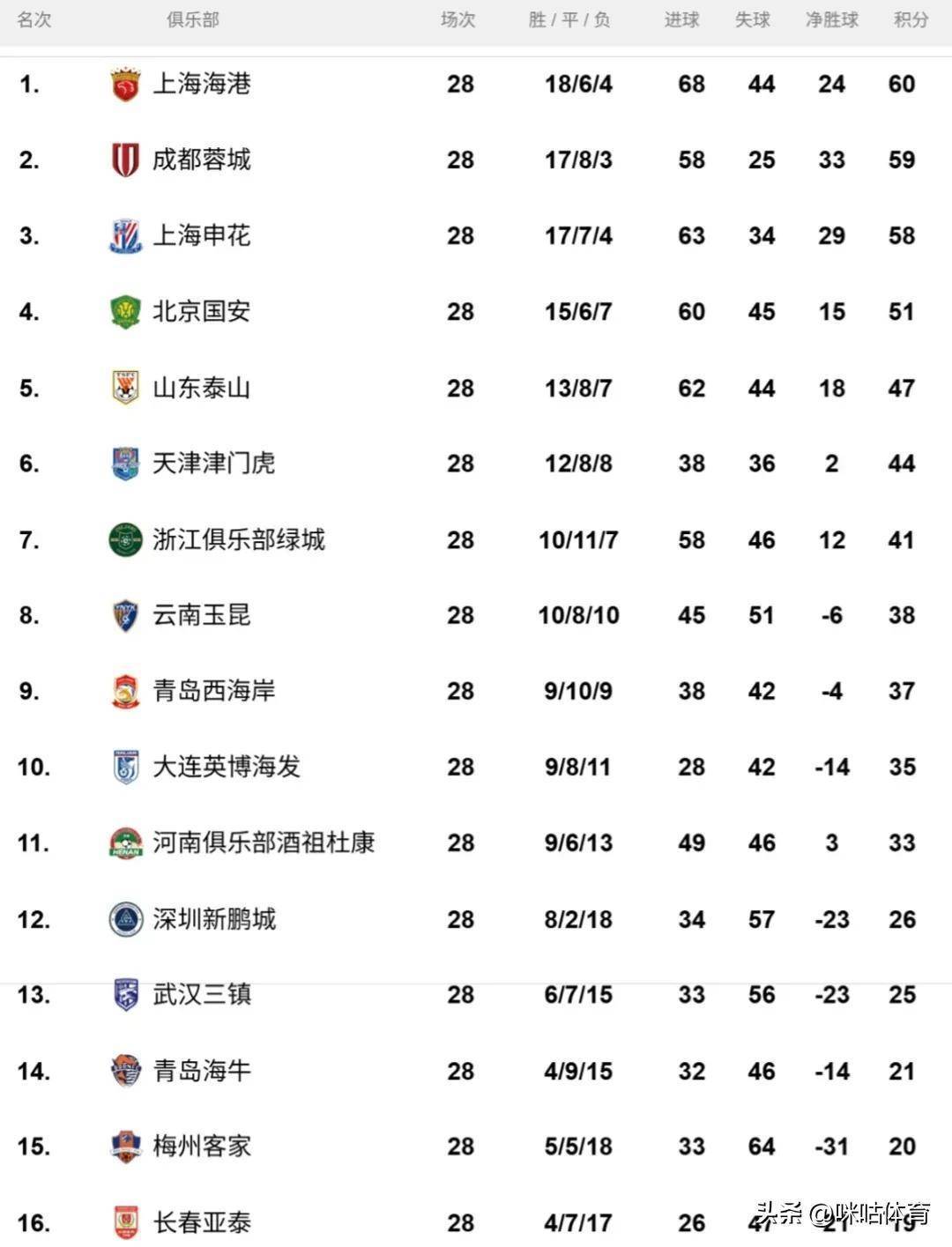 固然三支球队在积分榜上各差1分,但执行上海港与蓉城之间的距离,要小于蓉城与申花之间的距离。